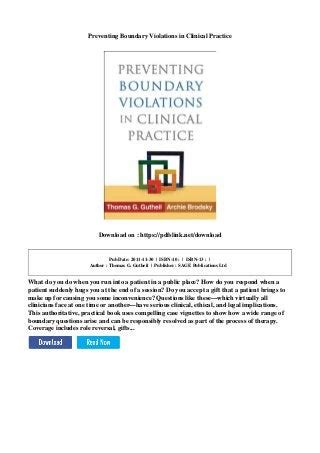 Download Preventing Boundary Violations in Clinical Practice Kobo Gutenberg